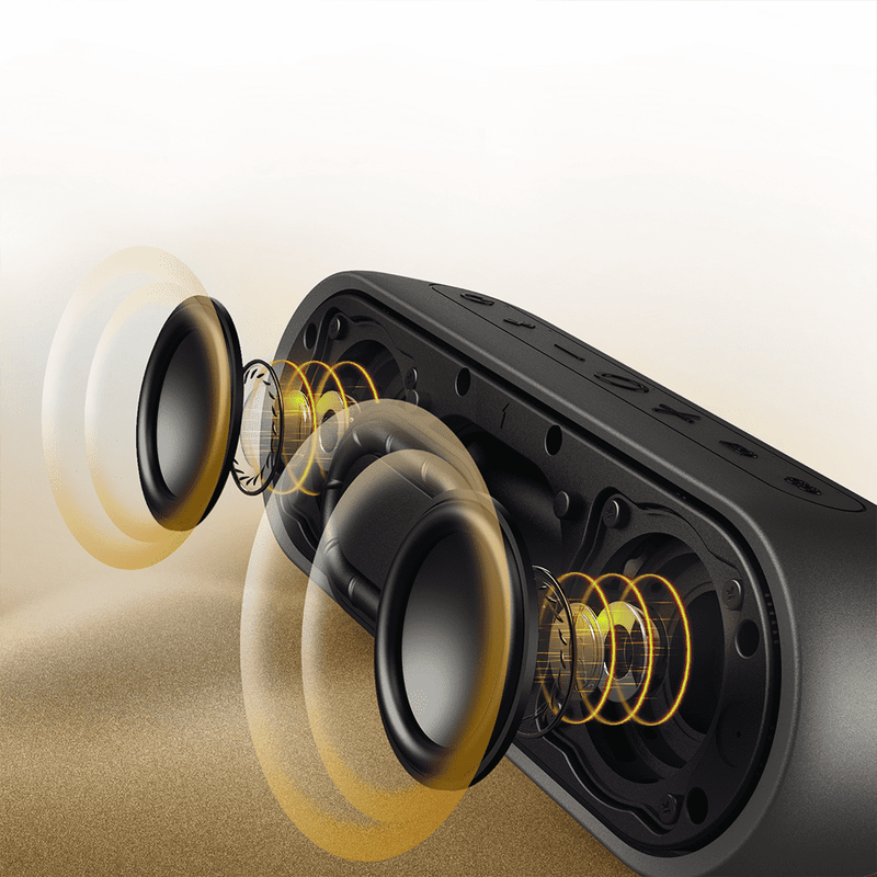 Equipped with neodymium full-range drivers, this Bluetooth speaker ensures crisp clarity. The advanced DSP and amplifiers, featuring the XBass patented algorithm, elevate your listening experience to new heights wirelessly.